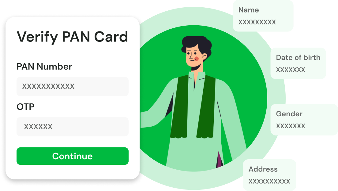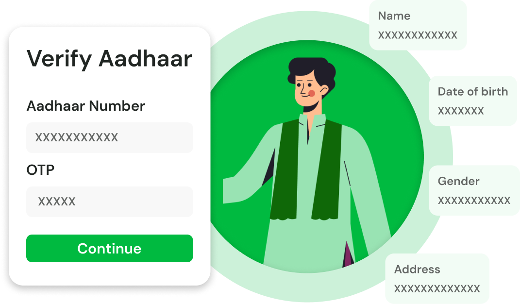 Finish Aadhaar, PAN, and bank verification digitally and securely.